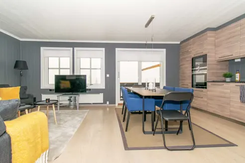 Lejlighed til maks 6 personer: 70 m², opholdsstue med køkkenafdeling, 3 soveværelse, 1 bruser, 1 WC, 1 sauna. Enheden har mikrobølgeovn, opvaskemaskine, køleskab, fryser. Soveværelse-1= 1 dobbeltseng 160 cm bred. Soveværelse-2= 1 køjeseng med 140 cm bred underkøje. Soveværelse-3= 1 køjeseng med 140 cm bred underkøje. Bad 1 med bruser, WC og sauna.
