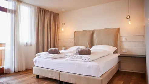 Suite Waldbaden med plads til 5 Personer: Værelset er cirka 70m2. Der er en dobbeltseng på værelset og et separat børneværelse.