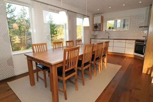 Opholdsstue med køkkenafdeling. TV, brændeovn (brænde indgår ikke), vaskemaskine, tørretumbler, tørreskab, skotører, 1 højstol, 1 barneseng, rum til skiudstyr, udtag til motorvarmer til bilen forefindes. Kræver specielt stik i bilen.